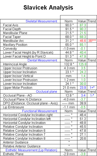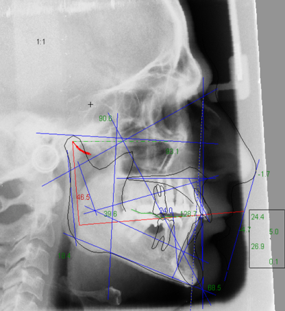 Esame cefalometrico da effettuarsi sulla radiografia del profilo del cranio per correlare le inclinazioni delle guide incisali e canine con quelle delle eminenze articolari precedentemente rilevate dall’assiografia. Lo stesso esame ci fornirà le caratteristiche antropometriche del caso e fornirà ulteriori dati per definire un piano di cura anche in termini ortodontici.